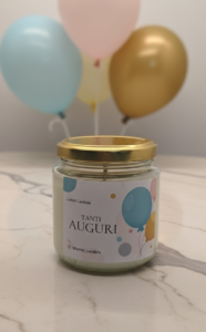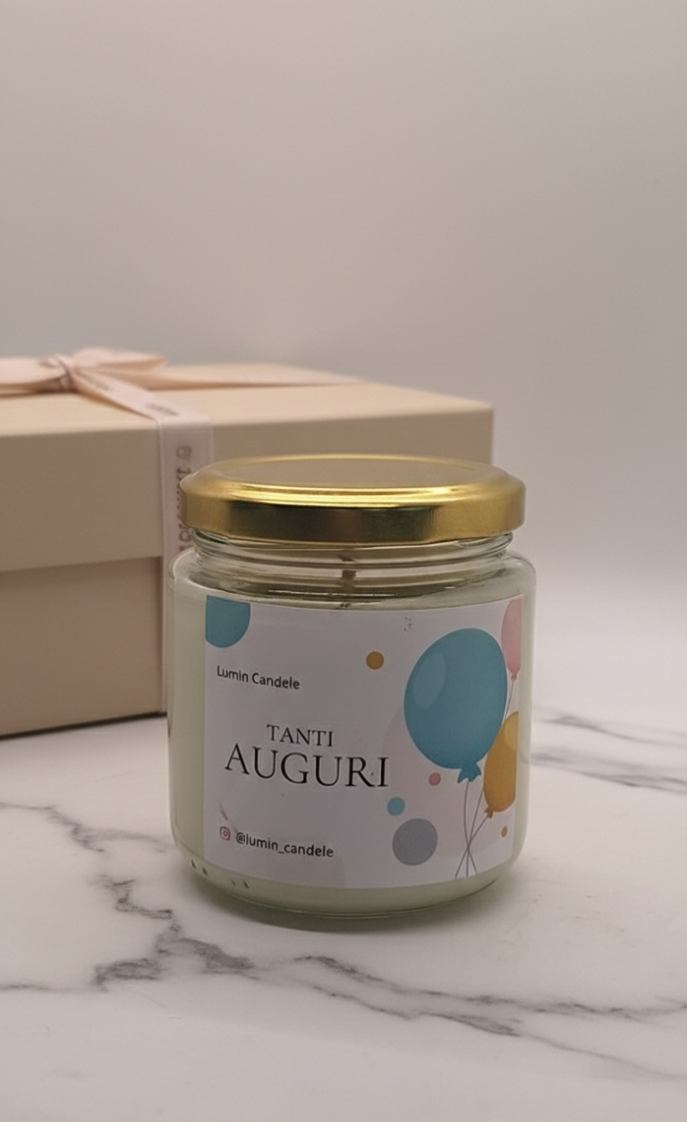 Tanti Auguri es la vela perfecta para celebrar cumpleaños y ocasiones especiales. cada vela está cuidadosamente elaborada de manera artesanal, combinando aromas dulces y festivos que crean una atmósfera alegre y elegante. Ideal para regalar sola o como parte de un detalle personalizado. Personaliza etiqueta y aroma.